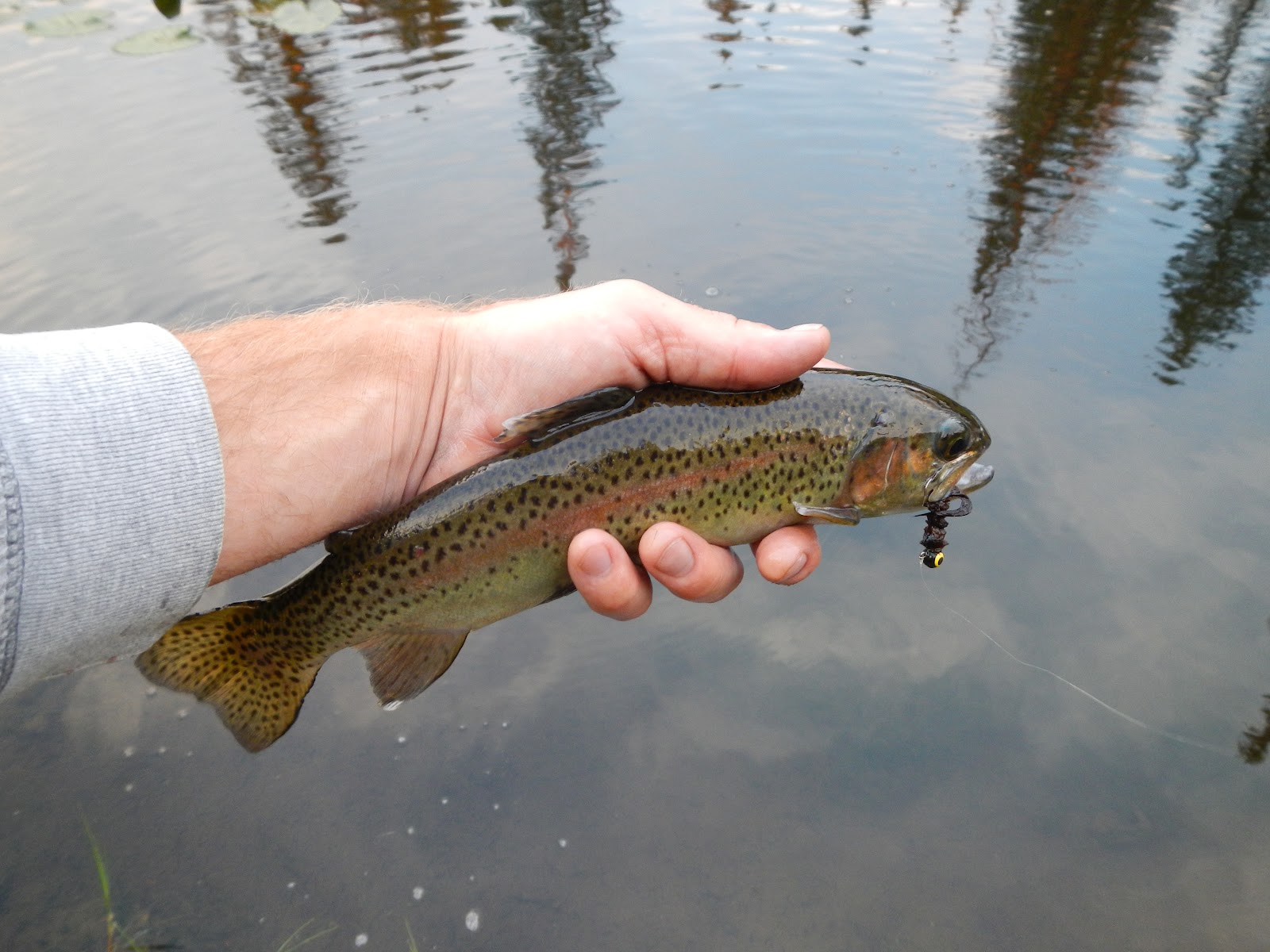 My next stop was at some ponds that I really like. The ponds don’t get stocked, but the nearest lakes do and some of those fish find their way into the ponds during the runoff. First in line to taste my hook was a tiny rainbow: