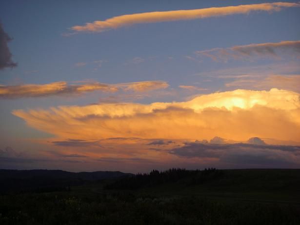 Amazing sky! That mounting thunderhead we'd noticed earlier was ablaze with sunset shades of fire.